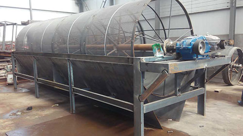 滾筒裝置傾斜安裝于機架上。電動機經(jīng)減速機與滾筒裝置通過聯(lián)軸器連接在一起,驅(qū)動滾筒裝置繞其軸線轉(zhuǎn)動。當物料進入滾筒裝置后,由于滾筒裝置的傾斜與轉(zhuǎn)動,使篩面上的物料翻轉(zhuǎn)與滾動,使合格物料(篩下產(chǎn)品)經(jīng)滾筒后端底部的出料口排出,不合格的物料(篩上產(chǎn)品)經(jīng)滾筒尾部的排料口排出。由于物料在滾筒內(nèi)的翻轉(zhuǎn)、滾動,使卡在篩孔中的物料可被彈出,防止篩孔堵塞。滾筒篩砂機、滾筒篩分機與滾筒篩的原理構(gòu)造幾乎相同,是人們對它的認識和叫法上存在差異。